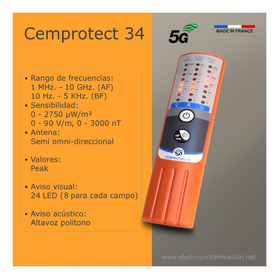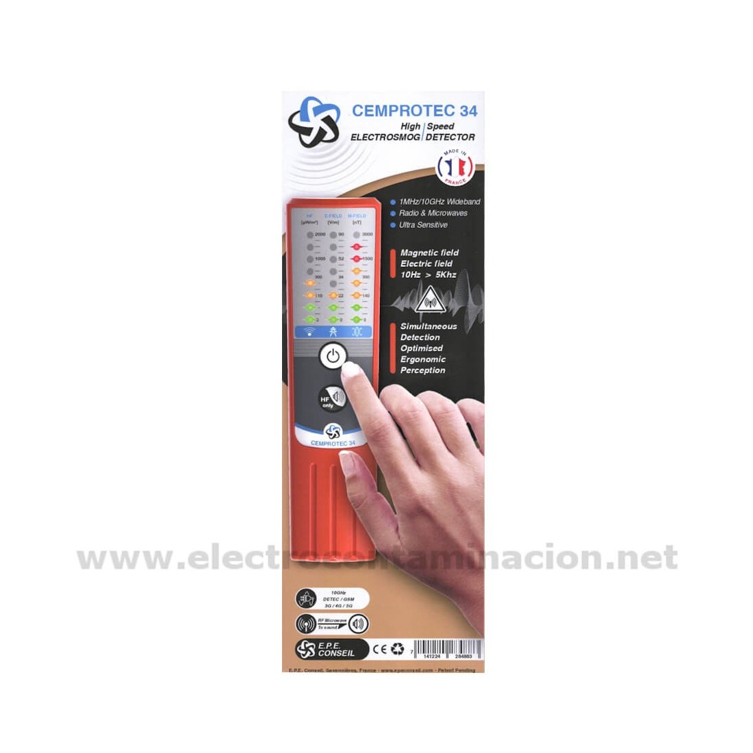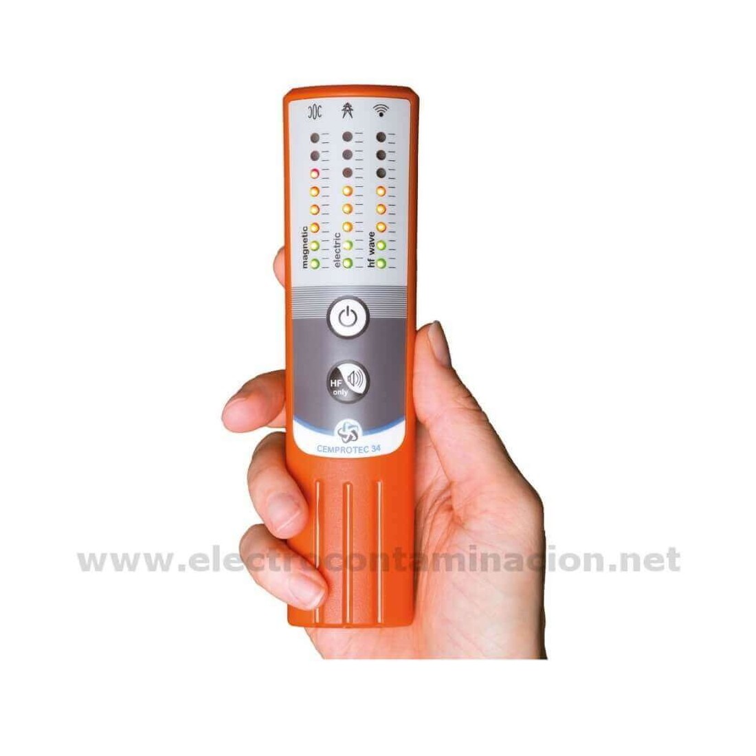 • El detector de ondas electromagnéticas CEMPROTEC 34 es la versión más estilizada del ESI 24 de la empresa francesa EPE-Conseil. Está orientado al uso no profesional. No es la opción más recomendada para personas electrosensibles ya que su precisión no es tan alta como la de otros medidores.