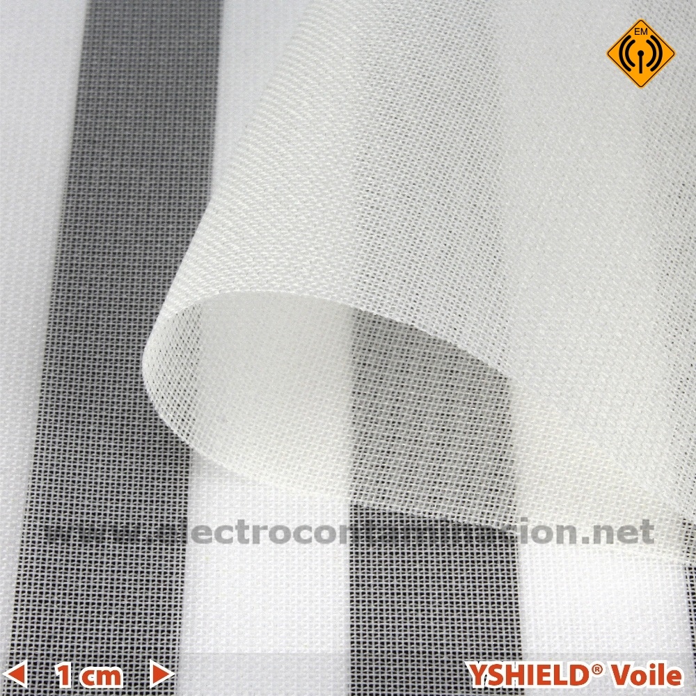 Tela para cortina apantallante de campos electromagnéticos, elegante, semitransparente de Trevira, material sintético. Ancho de 250 cm.
