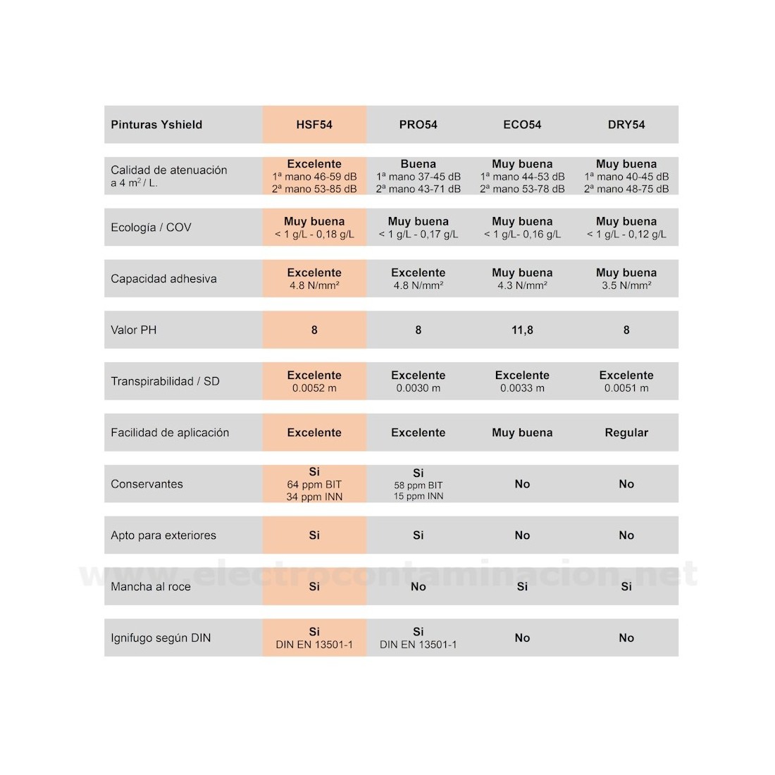 • Yshield ha conseguido, de nuevo, mejorar aún las propiedades de la pintura HSF54. Transpirable, sin disolventes, sin plastificantes y de baja emisión. Con excelentes propiedades físicas y químicas y, al mismo tiempo, altamente ecológico.