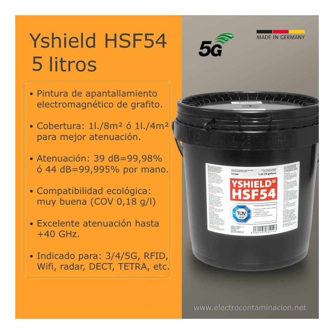 Pintura apantallante YSHIELD HSF54 (5 Litros) | Electrocontaminación