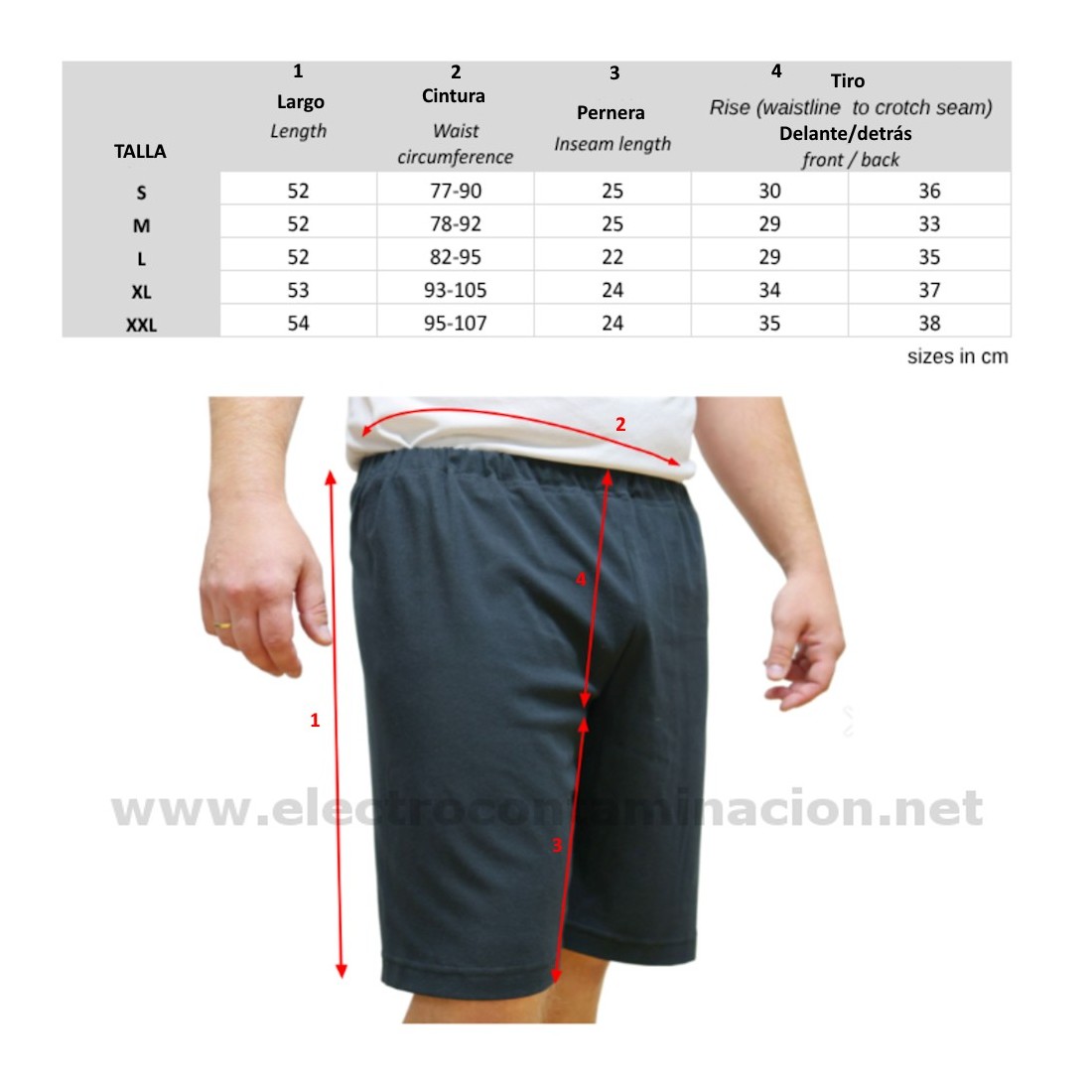 - Pantalón corto TBH unisex de tela elástica con muy buena capacidad de apantallamiento de los campos electromagnéticos de alta frecuencia.